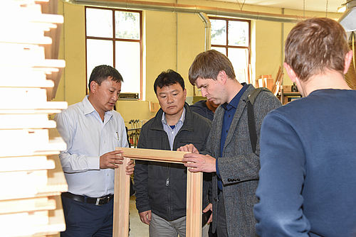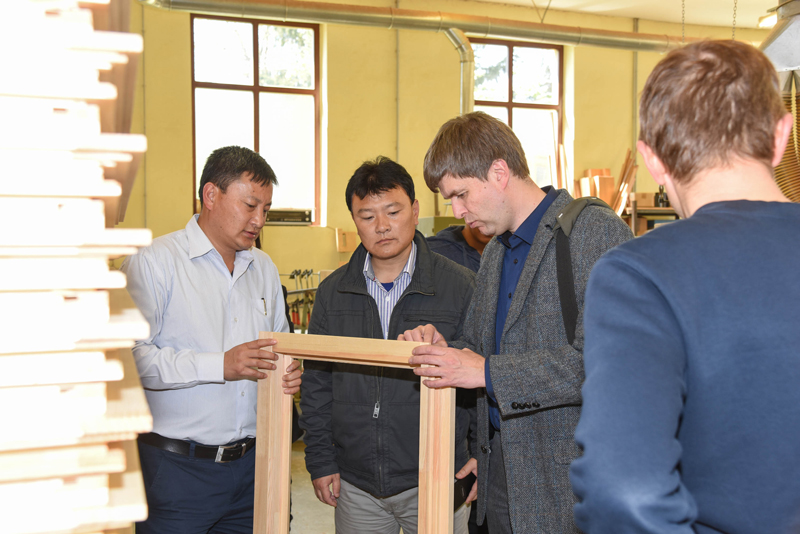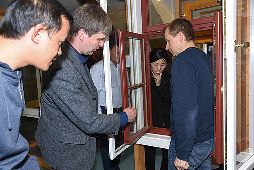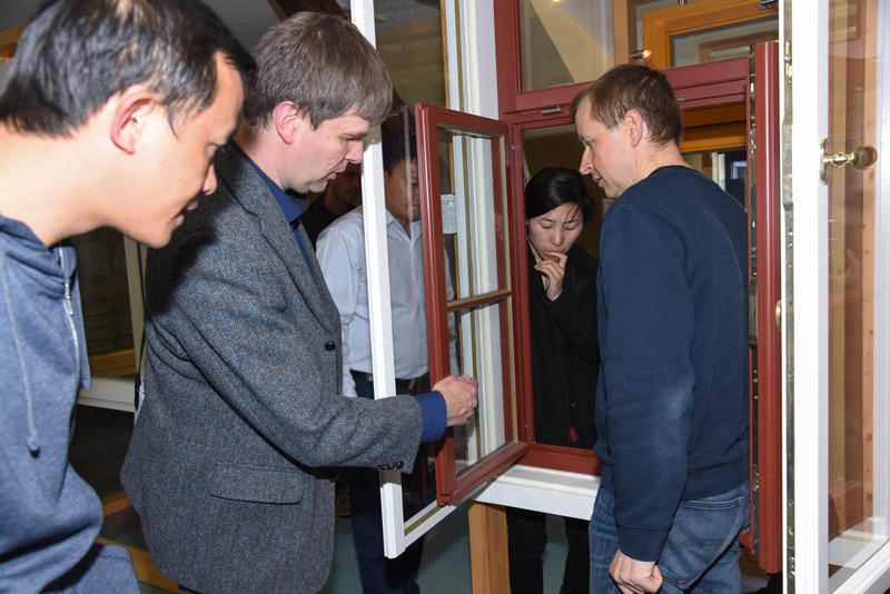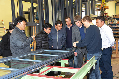 Gerne haben wir uns gegenüber dem Leiter des Projektes, Herrn Prof.Dr. Mark Jentsch von der Juniorprofessur Urban Energy Systems, bereiterklärt, den Bhutanischen Gästen Einblicke in die moderne Fensterfertigung zu geben. Am 02.05.2016 erhielten wir Besuch von einer 7 köpfigen Delegation. Neben den Fertigungsabläufen waren für unsere Bhutanischen Gäste von besonderem Interesse die Falzgeometrie und die Dichtungsebenen eines modernen wärmegedämmten Standardfensters. Beeindruckt waren die Bhutaner vor allem von der Präzision, mit der wir unsere Fenster fertigen. In einem Rund-Tisch-Gespräch wurde schnell klar, dass wir unsere Standards nicht nach Bhutan übertragen können. Wir würden es jedoch als Herausforderung ansehen, weiterhin beratend zur Seite stehen zu können, wenn es darum geht, die Fenster nach den dortigen Möglichkeiten energetisch zu verbessern.