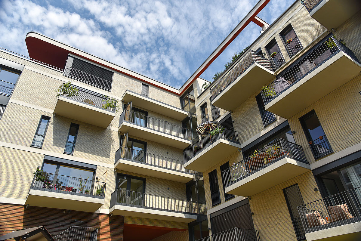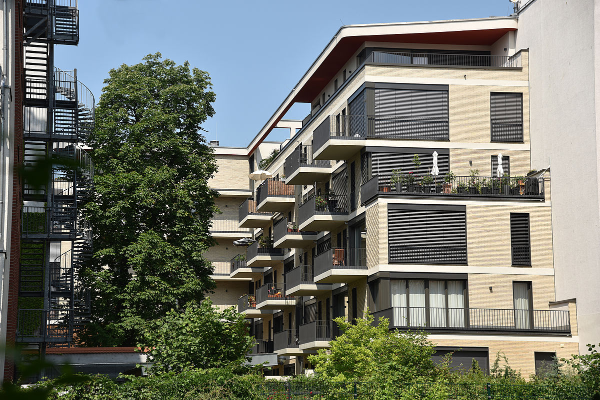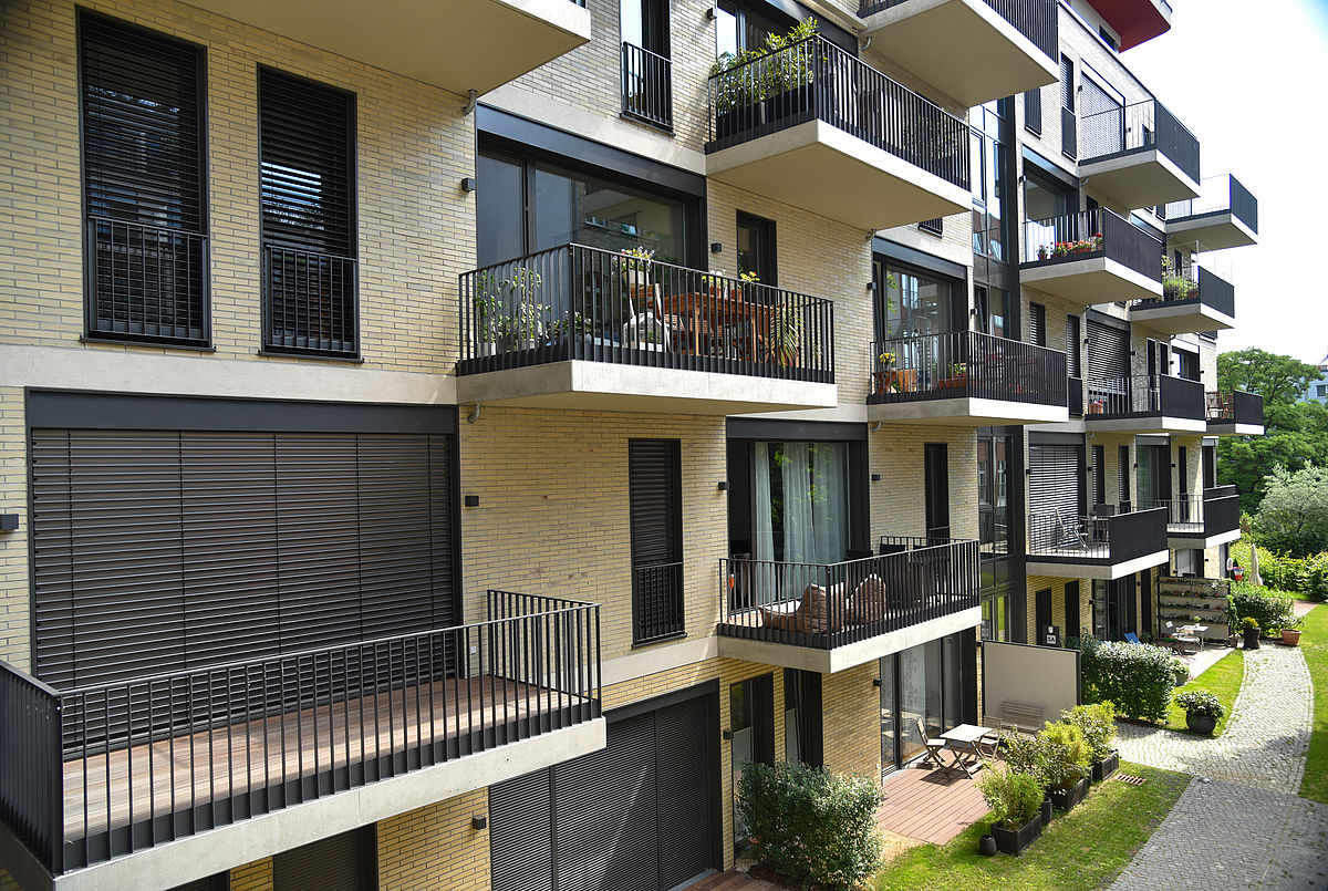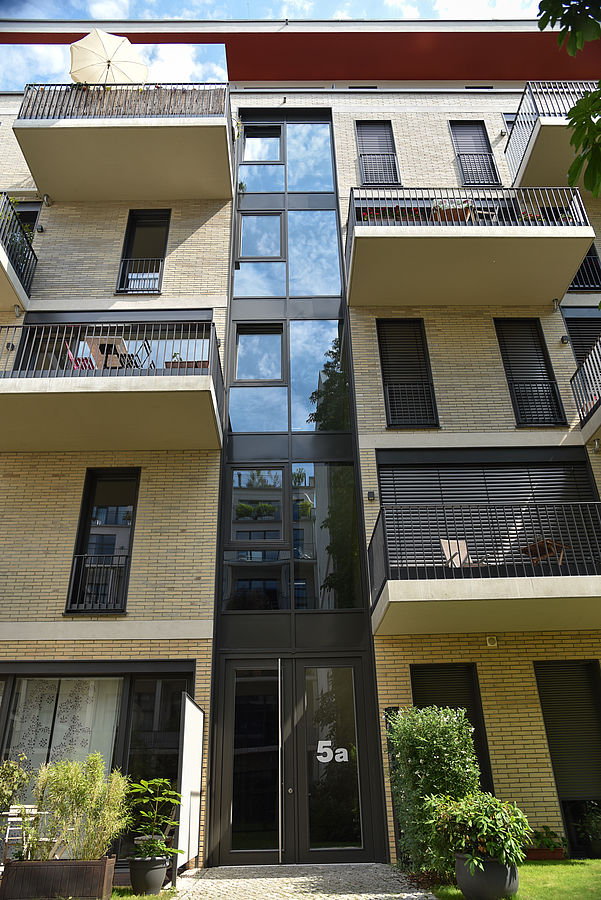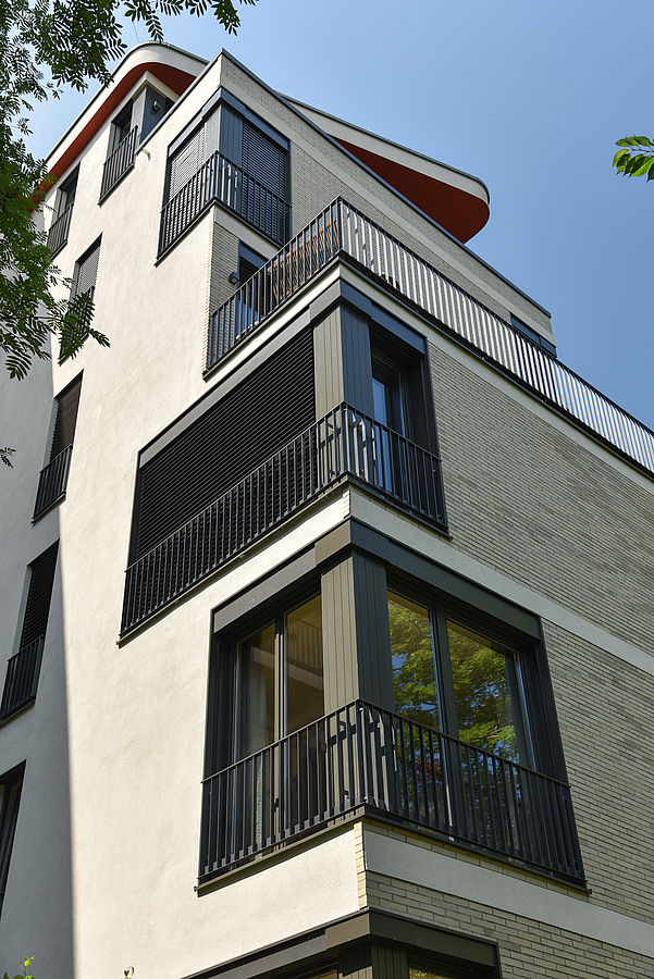 Der neue Wohnkomplex Michaelkirchplatz 4-6 befindet sich in einer stadtzentralen Lage an der Grenze von Kreuzberg und Mitte im Engelbecken. Vom straßenseitigen im Jahr 1949 errichteten Vorderhaus blickt man auf die im Park liegende Michaelkirche. Das Vorderhaus wurde umgebaut und durch ein transparentes Staffelgeschoß erweitert. Die in dem dahinterliegenden Hofbereich entstandenen Neubauten sind geprägt von Transparenz und Offenheit. Die beigefarbene Klinker-Fassade mit den weißen Putzbändern öffnet sich in einem munteren Wechselspiel von Balkonen und Terrassen und nicht zuletzt auch durch die großen Glasflächen. Bei den im Vorderhaus bestehenden Denkmalschutzanforderungen kamen Fenster mit denkmalgerechten Profilen und echtem Wetterschenkel zum Einsatz. In den 69 ganz individuellen Wohneinheiten und Penthouse-Wohnungen wurden neben normalen Dreh-Kipp-Fenstern für die Balkone und Terrassen auch großformatige Fenster mit unterschiedlichen Öffnungsarten eingebaut: Hebeschiebe-Fenster, Parallel-Schiebekipp-Fenster und Schiebe-Faltanlagen. Die Anforderungen des Sonnenschutzes wurden über Systemraffstoreanlagen realisiert.